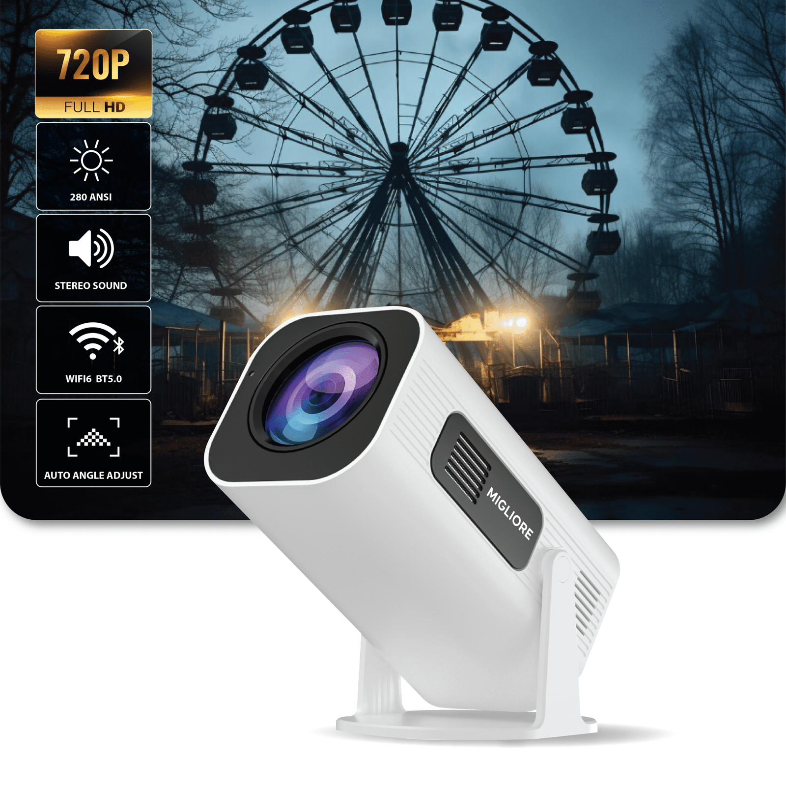 Brightness: 280 ANSI Lumens: High-brightness for vivid visuals — enjoy every detail with clarity.